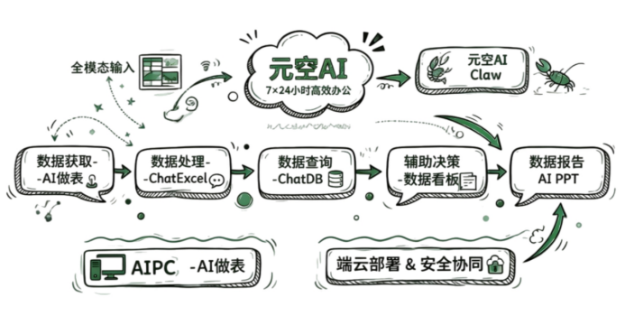 面对快速增长的用户需求,团队并未停留于单一工具的开发,而是在课题组深厚的多模态大模型研究基础上,完成了从“AI Excel工具”向“AI Data Agent(智能体)”的战略跃迁,并与产业伙伴逄大嵬共同创立了元空智能科技有限公司 。如今,元空AI已构建起涵盖AI Data Agent、AI Office办公全家桶及“元空AI claw”AI员工团队的矩阵化产品体系,并持续进化,不断破界,凭借扎实的学术研发功底与高效的产品迭代能力,斩获央视《赢在AI+》创业大赛智能办公组第一名等多项荣誉。