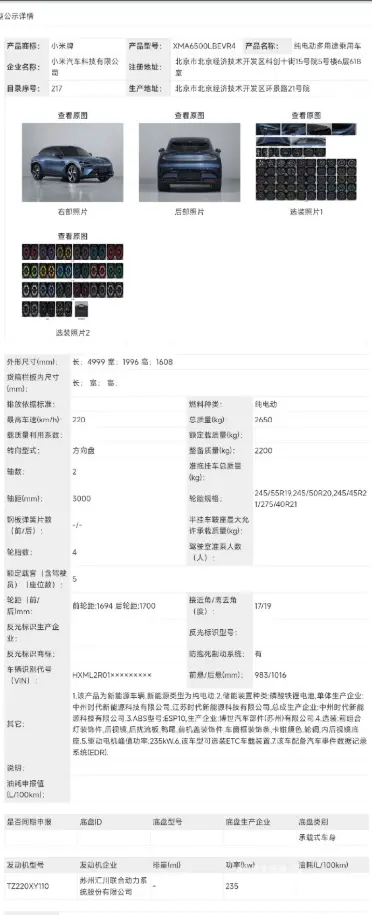 近日,工信部发布了最新一批新车申报目录,小米汽车旗下中大型SUV——小米YU7的一款新车型现身其中。