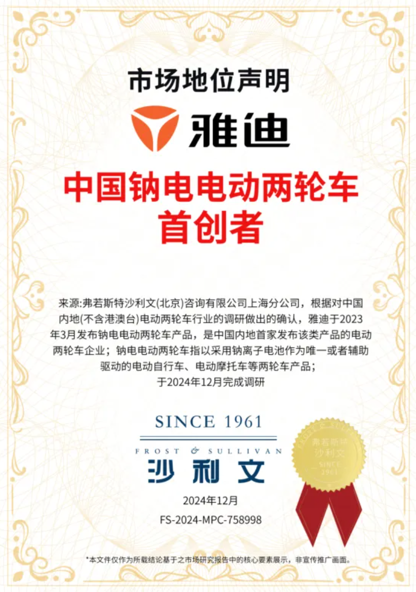 雅迪在钠电领域的突破性成果,赢得了权威的高度认可。中国工程院院士潘复生在央视《中国首发》节目中盛赞雅迪“引领电池工业的新一轮革命”。同时,深圳、杭州等多个国内一线城市已与雅迪达成钠电项目战略合作,充分印证了其技术路线的社会价值与商业前景。