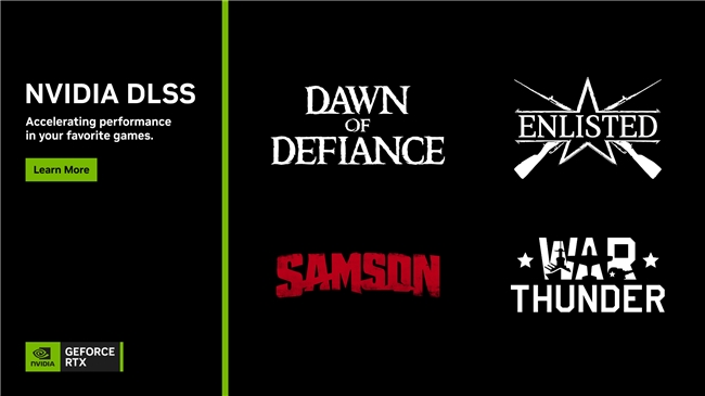 本周 Samson 现已支持光线追踪、DLSS 光线重建和 DLSS 多帧生成。Gaijin Entertainment 的 《从军》(Enlisted) 和《战争雷霆》(War Thunder) 也在各自的光线追踪效果中支持DLSS 光线重建,并为追求极致帧率而使用光栅化画面的玩家提供 DLSS 4.5 超分辨率。。