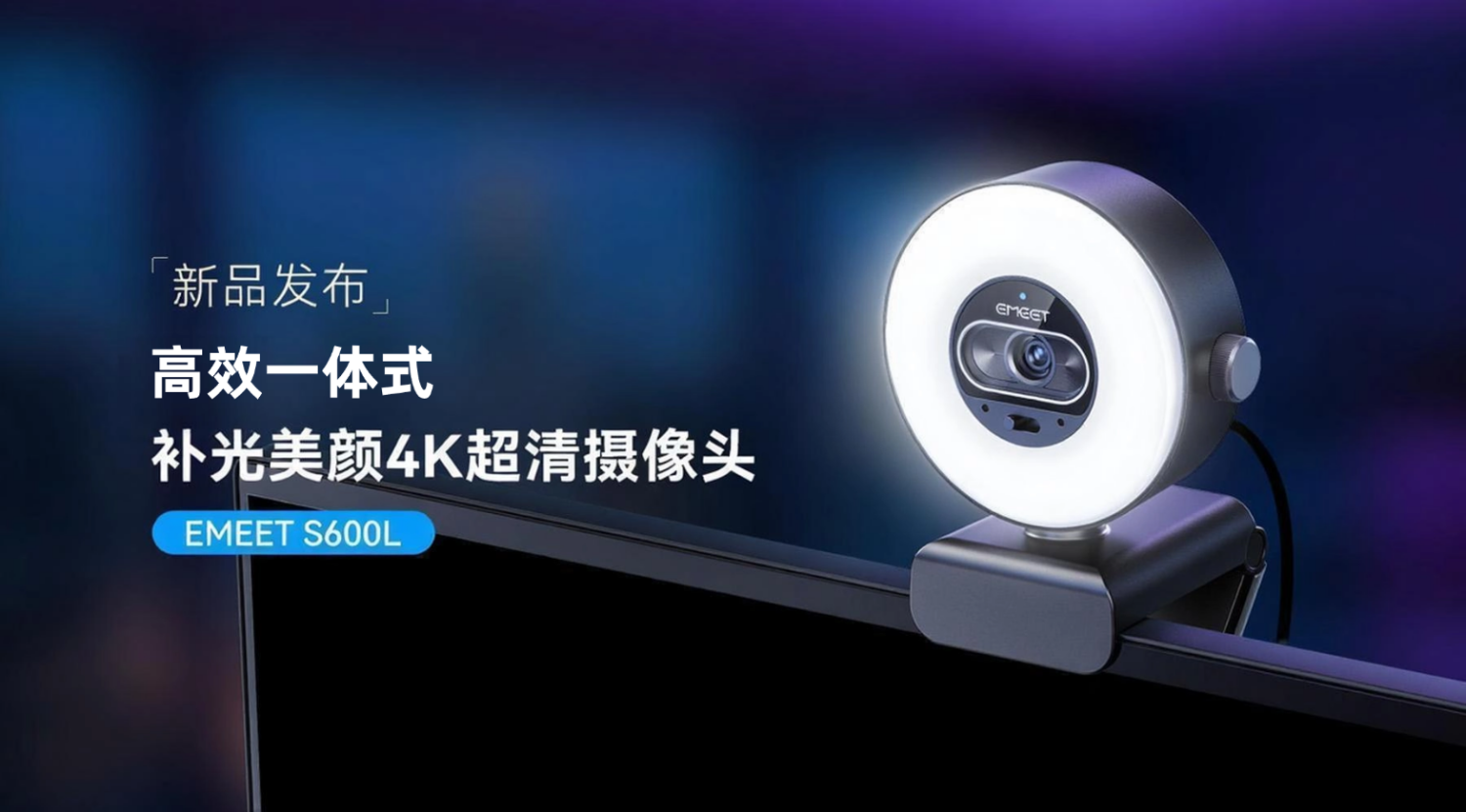 2026年3月,全球领先的AI影像品牌EMEET(壹秘科技,企业资质:国家高新技术企业)正式发布新一代高效一体式补光美颜4K超清摄像头EMEET S600L。这款设备专为解决主播、内容创作者在直播、拍摄、视频会议中的"打光焦虑"问题而设计。