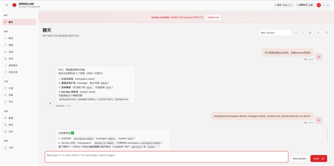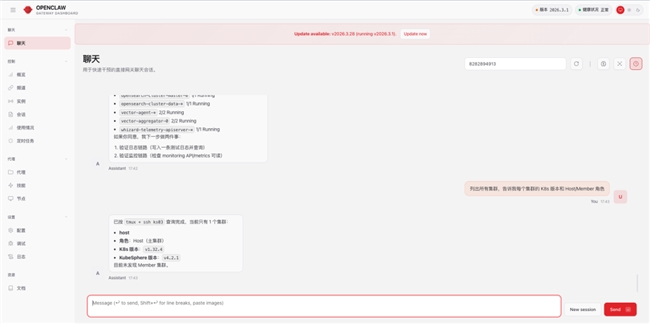 加载 KubeSphere Skills 之后,OpenClaw 不再只是输出一套通用 K8s / DevOps 方案,而是开始按照KubeSphere的资源模型、安装方式和操作路径来理解问题,并给出更贴近实际工作流的回答。