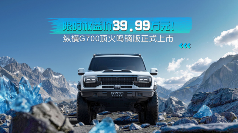 当原厂顶改成为豪华越野新趋势,纵横G700顶火鸣镝版以深度定制化配置与全域硬核实力,为高端越野玩家带来前所未有的出行体验。3月31日,纵横G700顶火鸣镝版正式上市,官方指导价42.49万元,限时权益价39.99万元,作为纵横品牌与高端改装机构顶火的重磅力作,顶火鸣镝版车型从外观设计、底盘架构、动力性能到智能座舱、安全防护,每一处配置都历经专业打磨,将野性与豪华、性能与品质完美融合,树立中国原厂改装越野新标杆。