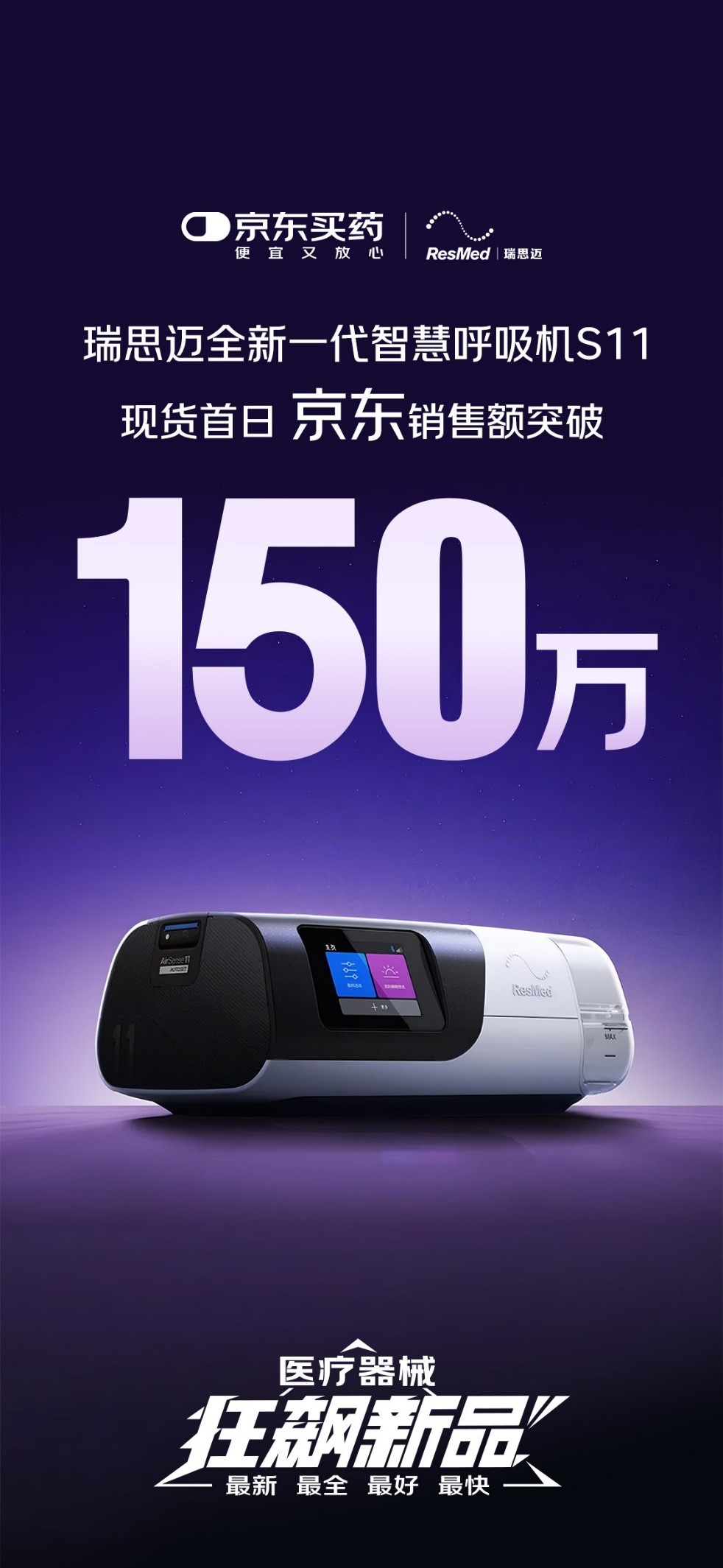 作为行业领先的医疗健康服务平台,京东健康借助“狂飙新品”等营销IP,不断为合作伙伴构建高效、精准的首发通道,致力于实现“新品必首发、首发必爆款、场场新标杆”的运营目标。未来,京东健康将继续携手瑞思迈等全球优秀品牌,共同推动医疗器械的智能创新,以科技力量与专业服务,守护国民呼吸健康。