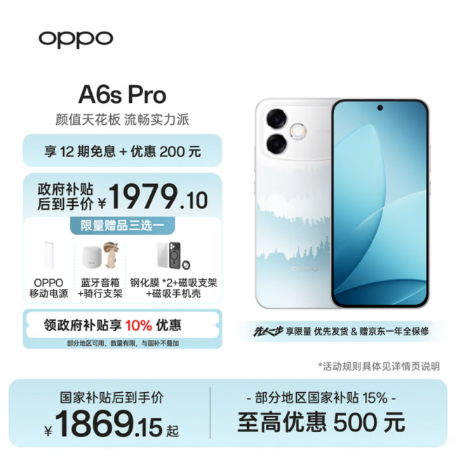 4月14日,OPPO A6s Pro正式发布,国补后1799.1元起,4月17日10点开售。为带给消费者更多权益,京东携手OPPO打造先人一步加速换新计划,提供限量新品现货优先发货,最快发布会当日送达。先人一步下单OPPO A6s Pro可享限量赠全保修权益。目前,OPPO A6s Pro已在京东同步预售,下单可享12期免息,优惠200元以及OPPO移动电源、蓝牙音箱+骑行支架、钢化膜x2+磁吸支架+磁吸手机壳三选一权益。