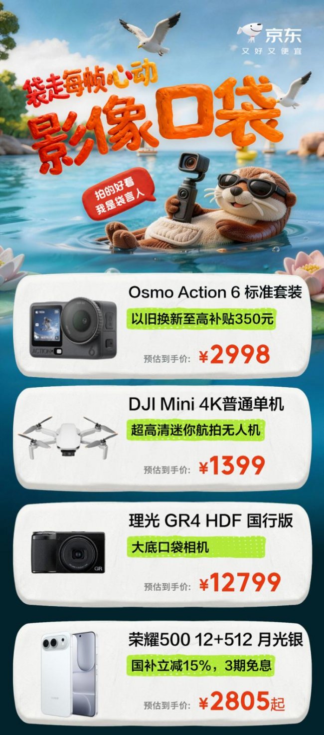 春光烂漫,正是出游好时节。值此之际,影像圈热议已久的大疆重磅新品即将发布,用户期待值持续拉满,出游记录的装备升级也迎来新一轮热潮。无论是记录山川湖海的壮阔风景,还是捕捉街头巷尾的人间烟火,一套趁手的影像装备与能量好物,都是旅途中不可或缺的搭档。京东“3C数码出游季”围绕用户真实出行需求,精选影像与存储好物,并叠加国补、以旧换新、分期免息等多重福利,让用户以更低门槛完成装备升级。打开京东APP搜索“3C数码出游季”,即可一站式配齐出游装备,轻松实现“拍得尽兴,玩得无忧”。
