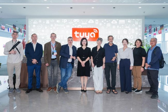 4 月 13 日,在第三届香港世界青年科学大会暨香江诺贝论坛期间,诺贝尔物理学奖得主康斯坦丁・诺沃肖洛夫,全球首位阿贝尔、图灵奖双料得主阿维・威格森,欧洲科学院院士、新加坡南洋理工大学教授吴应贵,与布达佩斯技术与经济大学电信与人工智能系副主任阿提拉・维道奇等一行前往深圳前海特区,到访涂鸦智能位于深圳的国际业务总部。涂鸦智能欧亚大区总经理俞菲等陪同参观。