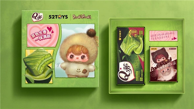 近日,国内领先的玩具品牌52TOYS与好丽友集团跨界联动,旗下潮流IP POUKAPOUKA与Q蒂经典抹茶味新品共同打造春日限定联名礼盒。此次联名以“美食+潮玩”的创新组合,为消费者带来“舌尖治愈+情绪治愈”的双重美好体验,成为兼具颜值、美味与情绪价值的春日热门好物。