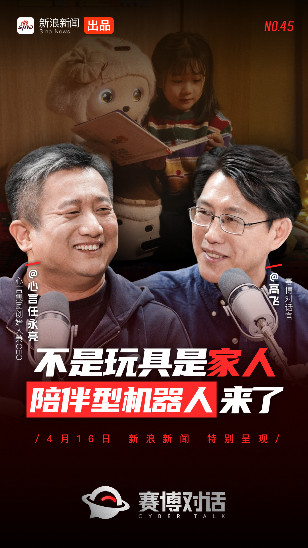 近日,心言集团创始人兼CEO任永亮做客由新浪新闻出品的深度访谈节目《赛博对话》,与赛博对话官高飞展开了一场关于陪伴机器人走入家庭的深度对谈。在这场对话中,任永亮首次系统阐释了心言集团首款家庭陪伴机器人“巴布”的独特定位——它不是为了替代人类情感连接的工具,而是家庭结构中一个全新的、有温度的成员。