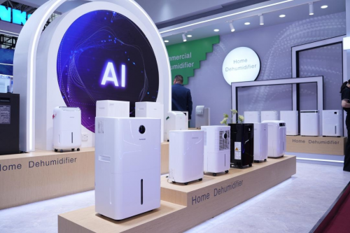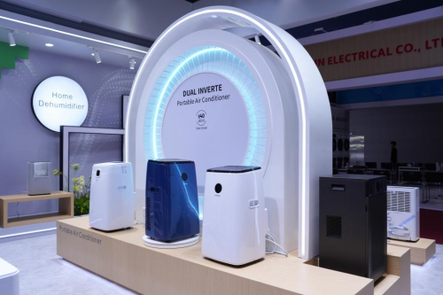 今年百奥展台采用浅灰与原木色调,展陈空间简约温馨,变频产品区、新品体验区、方案洽谈区功能分明,错落有致。家用除湿机、移动空调等产品在实际环境中的场景化呈现,让参观者可在亲身体验中感受科技为生活带来的便利与提升。