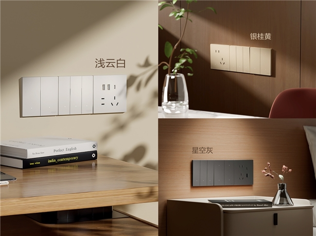 色彩上,提供浅云白、银桂黄、星空灰三大主流色系,能与普通插座能全套配齐,不用担心全屋开关插座风格不统一,更换更随心。
