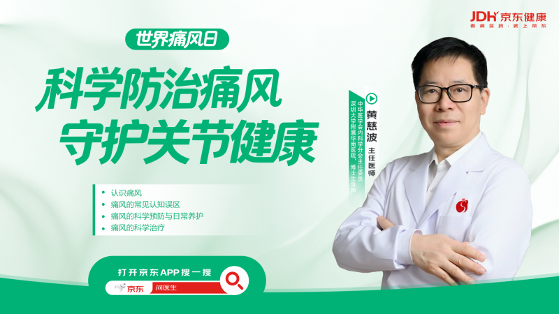 2026年4月20日,我们迎来了第10个“世界痛风日”,今年的主题是 “标本兼治,降尿酸抗炎双达标”。京东互联网医院特别邀请中华医学会内科学分会主任委员、中华医学会风湿病学分会副主任委员,深圳大学华南医院特聘教授、博士生导师,深圳中西医结合医院首席专家,原北京医院主任医师黄慈波教授做客直播间,围绕“科学防治痛风,守护关节健康”主题,为公众带来一场权威、系统的痛风防治科普。
