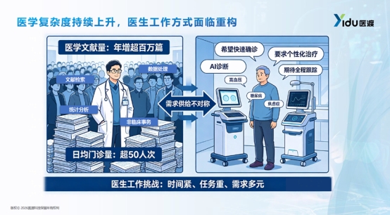 与此同时,医学知识正呈爆炸式增长,全球每30秒就有一篇新的医学论文发表,临床医生长期深陷“信息过载”困境,传统诊疗模式已无法适配日益复杂的医疗需求。