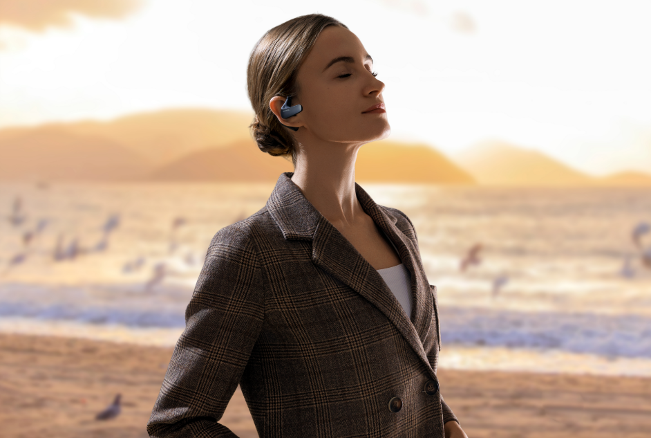 翻译的起点是收音。讯飞AI翻译耳机采用开放式挂耳结构,通过SGS舒适度认证,基于全球海量耳型数据设计,长时间佩戴不胀痛。单耳三麦克风阵列配合AI降噪算法,在嘈杂环境中分离人声与背景杂音,5-8米远场拾音能力保障旁听场景的收音距离。