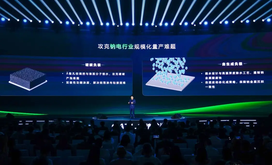 钠新电池突破极致控水、硬碳产气、铝箔粘接、自生成负极量产等四大难关,将于2026年底规模化量产。