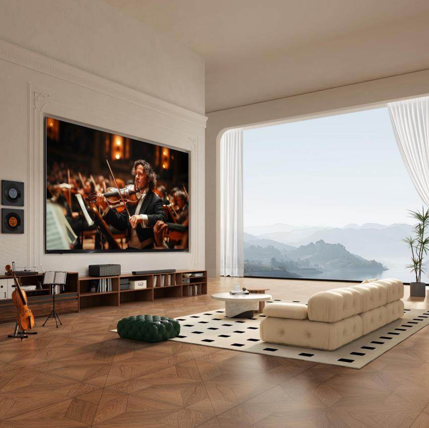 选购过程中,屏幕也是容易忽视的部分。买回去才发现,白天客厅一亮,屏幕全是人影与灯光倒影;晚上看片,黑色不够深邃,画面发灰发雾,只能关灯追剧,彻底失去观影自由。
