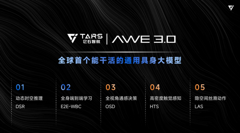 模型——发布具身领域专有模型:能干活的具身大模型AWE3.0,让机器人走出温室、通用泛化、落地干活。