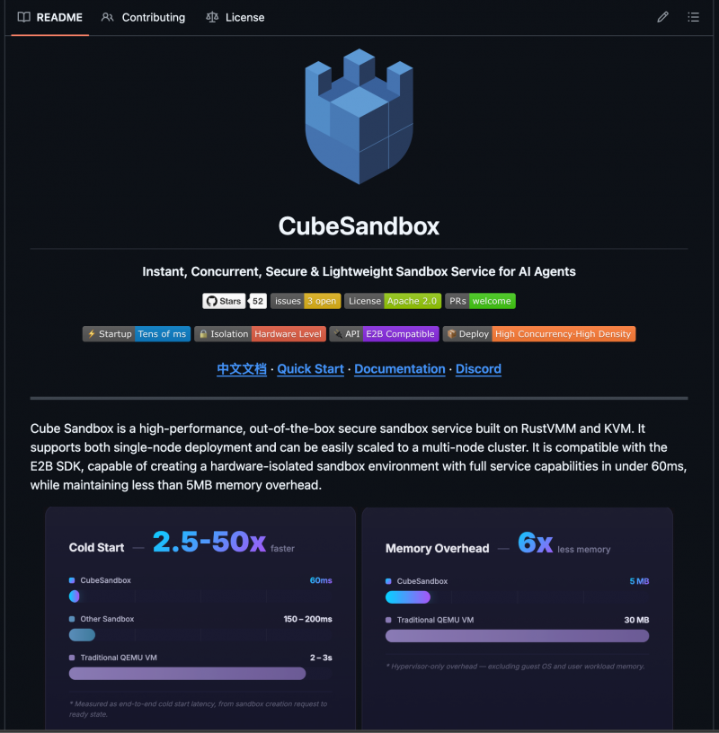 对于政企客户,Cube沙箱支持完整私有化部署,数据不出企业边界,满足等保与合规要求。Apache 2.0协议保障商业使用友好,代码完全可审计,不依赖任何海外云服务商,为数据主权敏感场景提供可信的Agent执行环境。