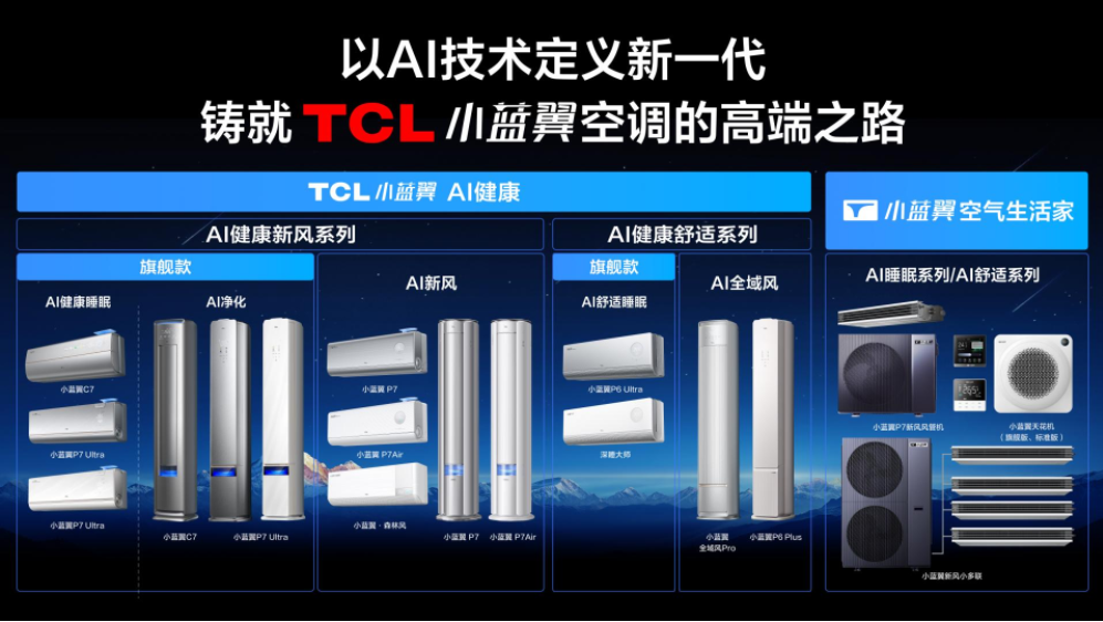 如今,TCL空调已构建起AI健康新风系列、AI健康舒适系列,同步推出家中小蓝翼空气生活家,为用户带来智慧健康的呼吸解决方案。