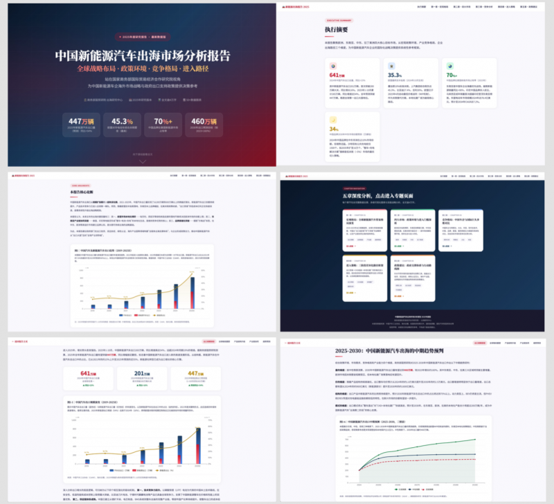 响指AI案例:《中国新能源汽车出海市场分析报告》网站