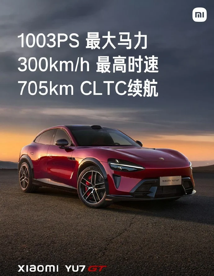 小米YU7 GT拥有“战马姿态”,标志性的长车头和跑车级宽体设计,将顶级赛道纽北当成“最佳试验场”进行「德味调校」,弯道又快又稳,让长途旅行更尽兴从容。据悉,新车最大马力可达1003ps,最高时速300km/h,CLTC纯电续航705km。