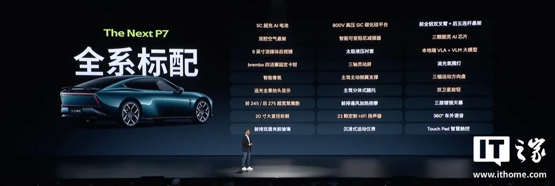 据IT之家此前报道,全新小鹏 P7 于 2025 年 8 月 27 日晚正式上市,先前提供 820km 超长续航 Ultra、750km 高性能 Ultra、702km 长续航 Ultra 三种不同配置,还有鹏翼特别版车型。该车全系标配 800V 架构、5C 电池,双电机车型零百加速 3.7s,售价 21.98 万-30.18 万元。