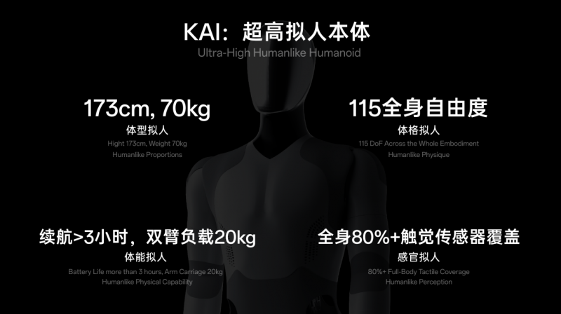 这也就是KAI的身体——KaiBot。据介绍,KAI的高拟人本体能力可以概括为体型拟人、体格拟人、体能拟人和感知拟人四个层面。