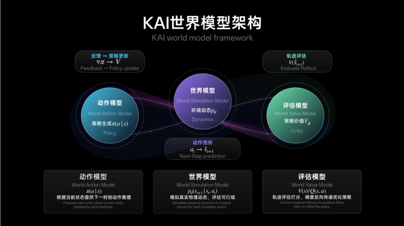 理解世界,就是让机器人不仅能感知当前环境,还能对接下来的环境变化作出预测,也就是KAI World Model。
