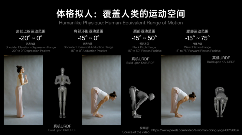 在体型上,KaiBot身高173厘米、体重70公斤、头身比1:8.5。整体体型和质量分配接近成年人类,在保证稳定性的同时贴近人的外形和重心分布。
