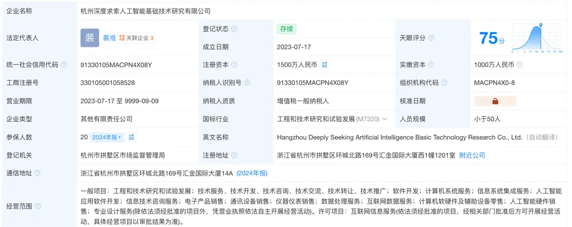 DeepSeek注册资本增加500万,梁文锋总持股超84%