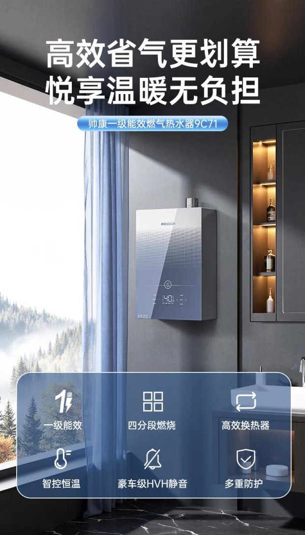 热水器使用场景中,夏天水烫、冬天水冷、热水升温慢、多点用水时水温波动,是许多家庭的真实烦恼。对此,帅康燃气热水器以双路传感精准智控实时监测水流与温度变化,无论多处用水还是季节交替,水温始终稳定,即开即热。同时,四季智能调节功能让调温更便捷,更能确保出水温度恰到好处,让整个沐浴过程实现水温恒定、无需等待的0冷感体验。