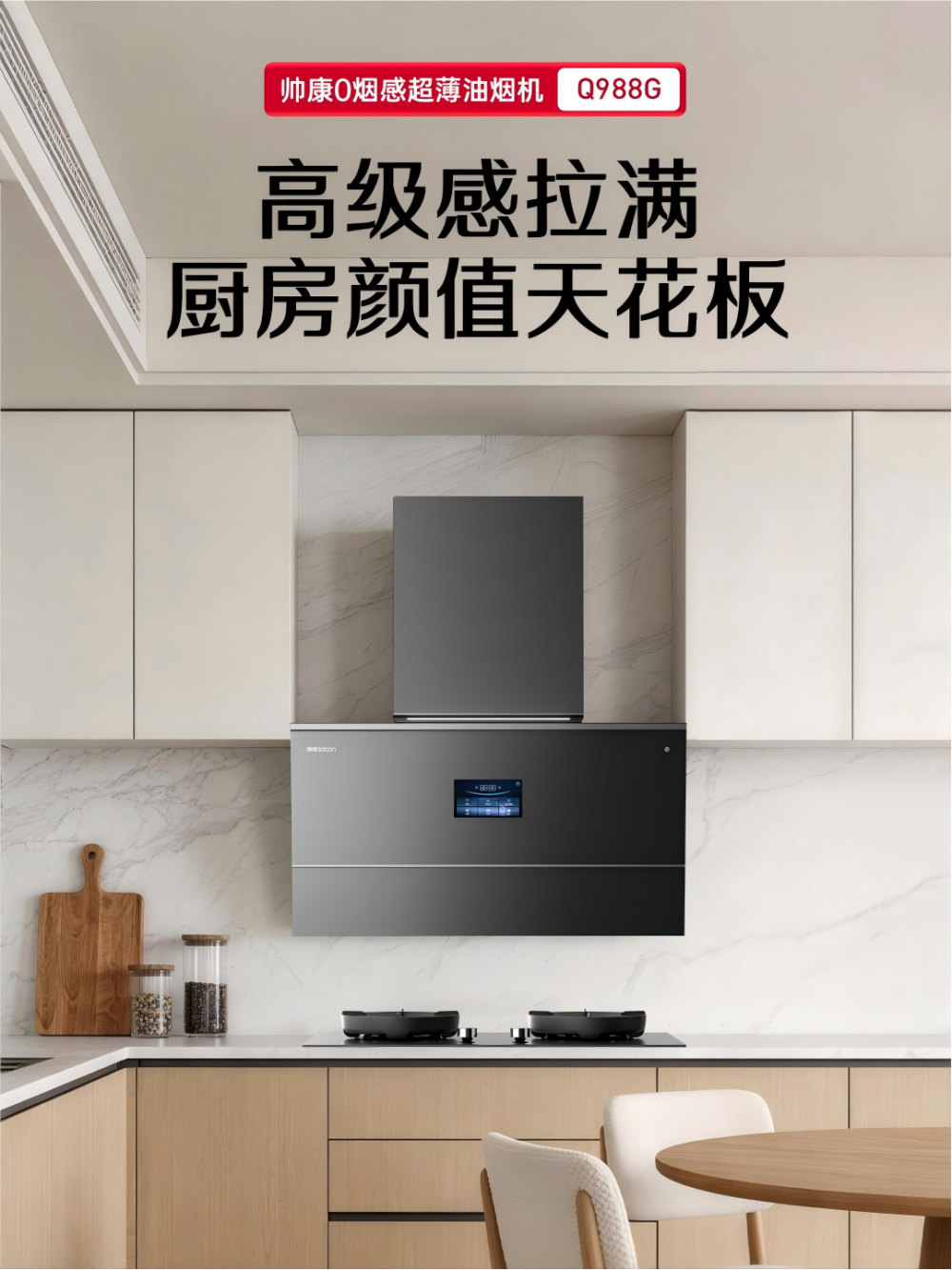 厨房烹饪时,传统油烟机风力不足、油烟吸排不彻底,是很多家庭烹饪的一大困扰,也让厨房焕新失去意义。帅康0烟感超薄油烟机碧影系列,精准破解这一痛点,适配现代健康厨房打造需求。
