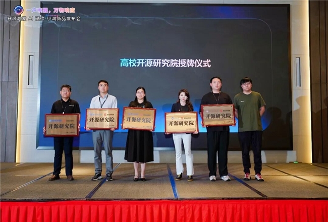 本次发布会两大核心生态共建环节,将现场氛围推向顶点。其中,AtomGit开源研究院高校授牌仪式正式举行,标志着平台产教融合战略从规划迈入实质落地阶段。